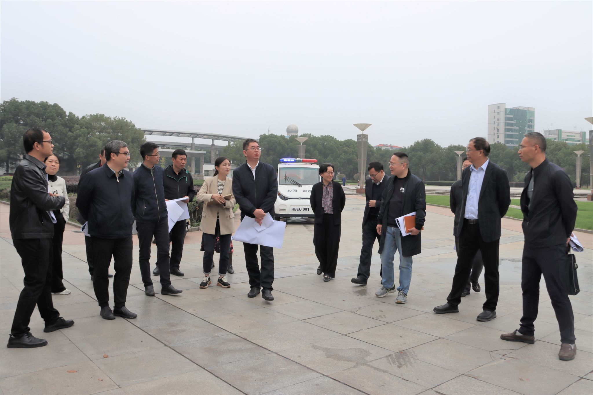汪海波一行先后对湖东路、北大门、湖西路、体育馆、南二门等重点区域和隐患部位进行了细致检查,详细询问工作人员相关的准备情况和工作进度,并在校史馆会议室召开会议,就检查中发现的问题商讨解决方案,安排部署校庆其它有关工作。